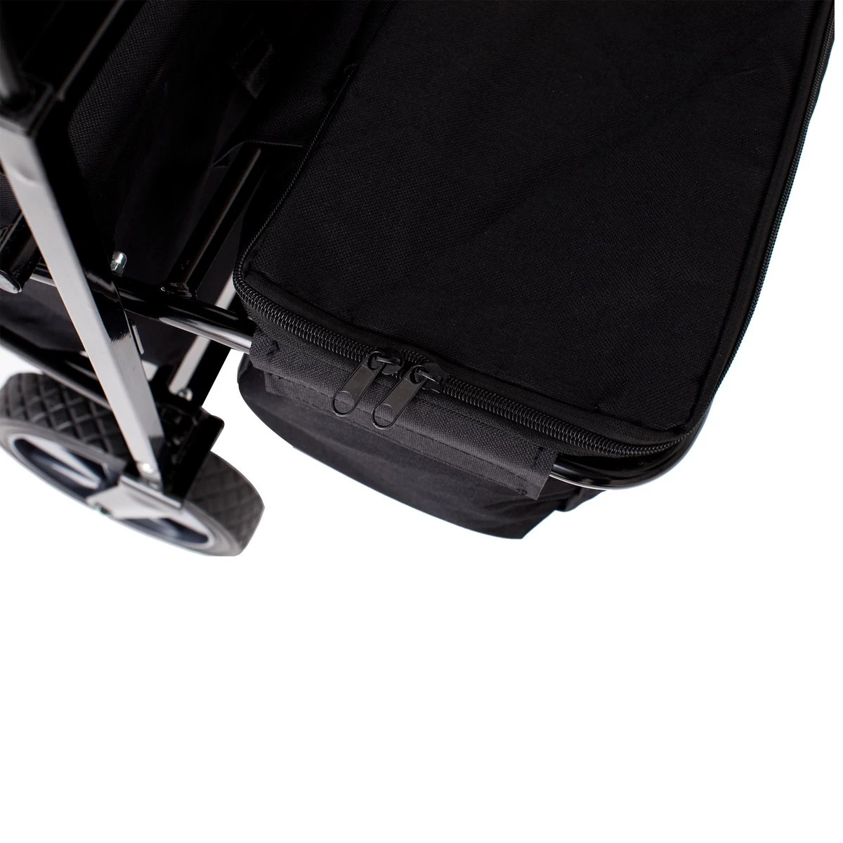 [FLEXIBEL] De trolley heeft 360° zwenkbare voorwielen. Dankzij de twee stevige achterwielen staat de trolley stabiel, zelfs wanneer hij is opgevouwen.