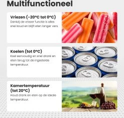 - 49,5L inhoud. Ruimte voor 60 blikjes