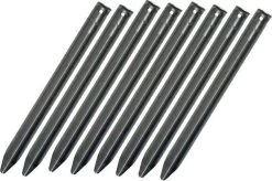 Set met 8 verzinkte stalen tentharingen voor het verankeren van zonneschermen, tenten etc.De metalen haring is voorzien van kartels voor extra grip en is vooral geschikt voor niet te harde grond, zoals weiland, gazons, heidegrond etc.