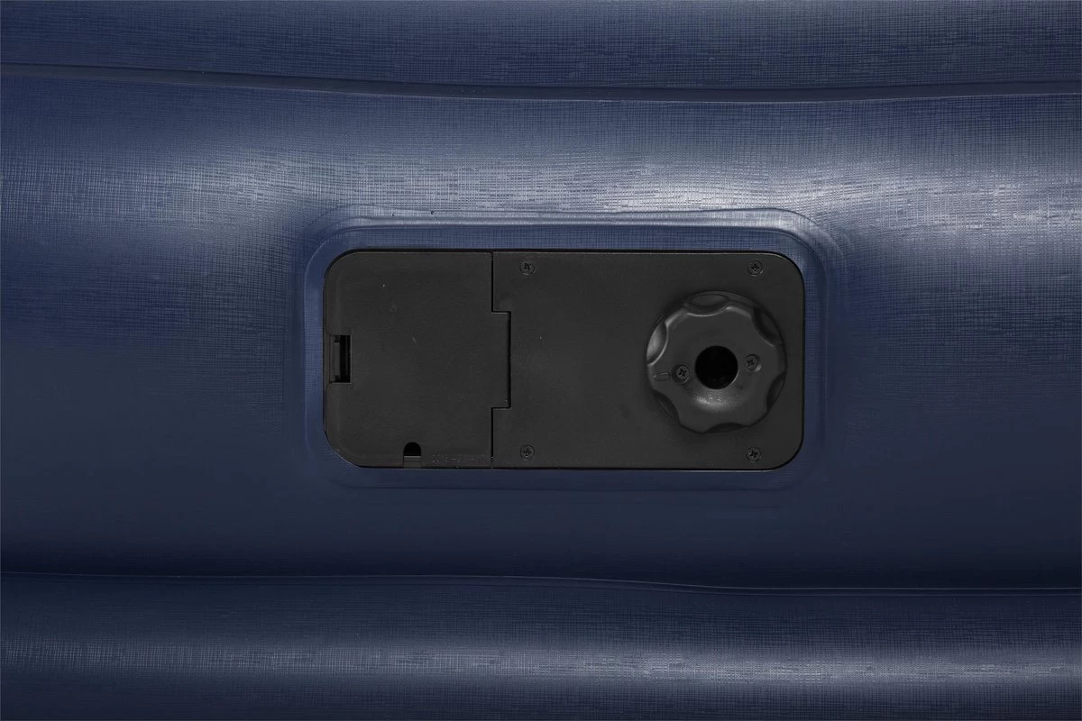 Dit sterke luchtbed voor indoor gebruik is gemaakt van voorgetest vinyl, uitgerust met een ingebouwde luchtpomp en voorzien van een aangename geruwde toplaag. Het bed heeft een comfortabele rand rondom, zodat afrollen wordt voorkomen. De Tritech I-beam constructie is opgebouwd uit 3 duurzame lagen, zodat het bed zijn vorm behoud en de hele nacht stevig blijft. Ingebouwd hoofdkussen. Wordt geleverd incl. reparatie patch en met een opbergzak. Afmeting: 191x97x46 cm.