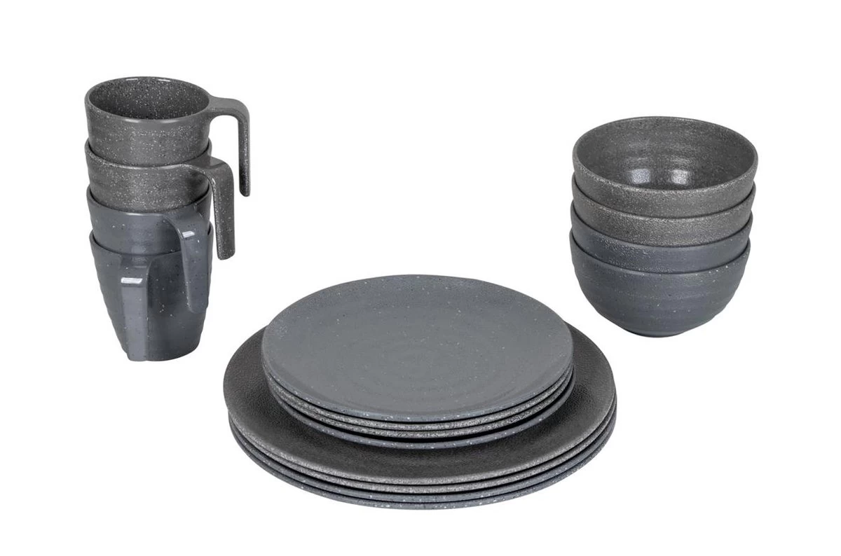 Een 16-delig servies van 100% melamine met een prachtig design. Met deze serviesset breng je sfeer en gezelligheid op tafel. Melamine servies is vrijwel onbreekbaar en zeer licht van gewicht. Daarnaast is het servies kraswerend en vaatwasmachinebestendig en geschikt voor 85 graden. Deze stijlvolle set is geschikt voor 4 personen en bestaat uit 4 borden, 4 ontbijtbordjes, 4 kommen en 4 mokken.