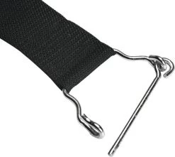 – Het oog van de spanband gaat door het oog van de clip.