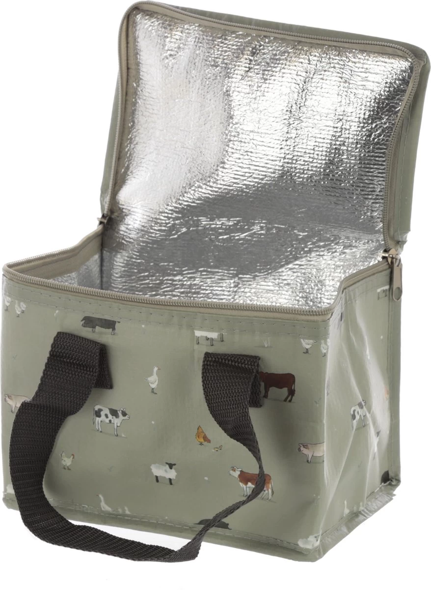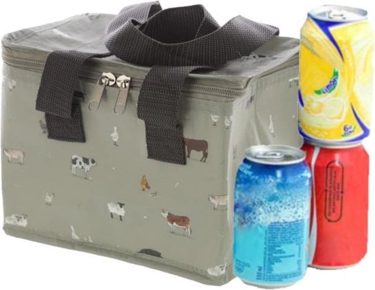 Kleine Koeltas Voor Lunch Grijs Met Boerderij Dieren Print 16 X 21 X 14 Cm 4,7 Liter – Koeltassen