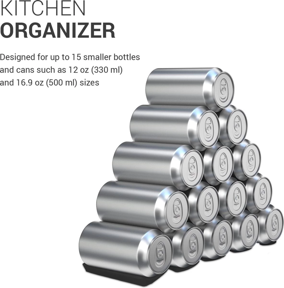 - GESCHIKT VOOR: De opberger is geschikt voor maximaal 15 flessen of blikjes van 0,33 of 0,5 liter, maar ook voor grotere flessen van 1 en 1,5 liter. Afmetingen: 31 x 9,5 x 1 centimeter.