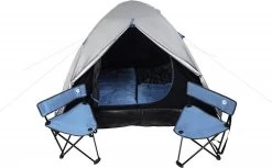 De Camping Set bestaat uit een ruime monodome kampeertent, twee comfortabele slaapzakken en twee opvouwbare campingstoelen. De Camping Set is voor uw gemak verpakt in een hoogwaardige en duurzame draagtas met ritssluiting. Gebruik de campingstoelen om te ontspannen en een heerlijk kampeerfeest te bereiden