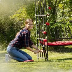 Gebruik de 4 grote grondankers om je rozenboog of plantensteun vast te zetten in de grond. Plaats de ankers over het frame van de plantensteun en sla de u-vormige haring met behulp van een rubberen hamer de grond in. De metalen haringen hebben lengte van 30 cm en kunnen dus diep de grond in worden geslagen. Dit zorgt ervoor dat je rozenboog ook als het waait stevig staat. De robuuste grondpennen zijn gemaakt van staal met poedercoating.
