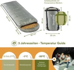 Uitgerust met een 2-laags 200 g/m² microvezel vulling, is de Dundee een 3-seizoenen slaapzak en geschikt voor comforttemperaturen van 12 – 2°C. Het royale hoofdgedeelte heeft een opening van 14 cm. Het royale hoofdgedeelte heeft een 14 cm hoge rand met trekkoord om volledig in te kunnen kruipen en hoofd en schouders lekker warm te houden. De speciale kamerconstructie van de vulling zorgt ervoor dat deze altijd goed verdeeld blijft en niet wegglijdt, zelfs niet tijdens het wasproces. Wassen in de wasmachine is mogelijk op 30°C op het zachte programma en zorgt ervoor dat de slaapzak grondig wordt opgefrist zonder dat de kleuren verbleken.