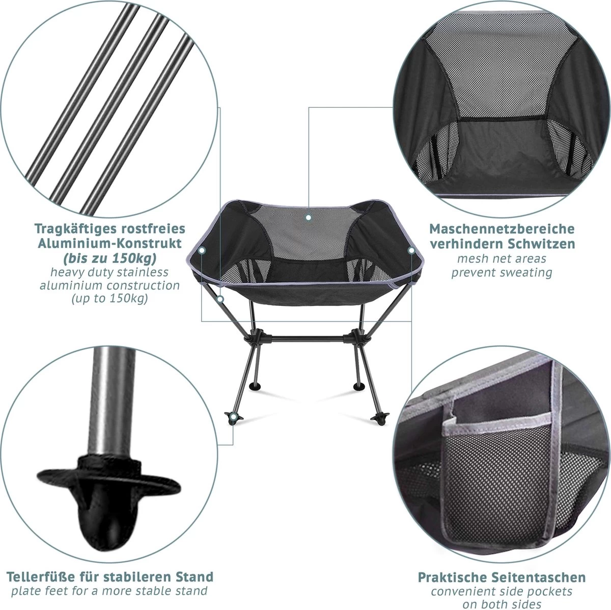 Smartpeas Camping Stoel Van Stevig 600D Polyester En Aluminium – Lichtgewicht En Opvouwbaar – Camping Gadget Inclusief Zijzakken +Plus: Strandmat & Draagtas