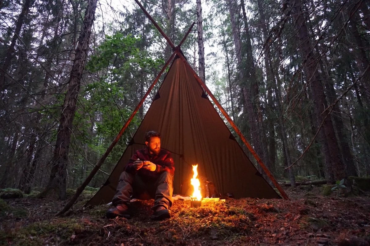 De tarp is ook te gebruiken als tent, afdak boven je kamp of als grondzeil.