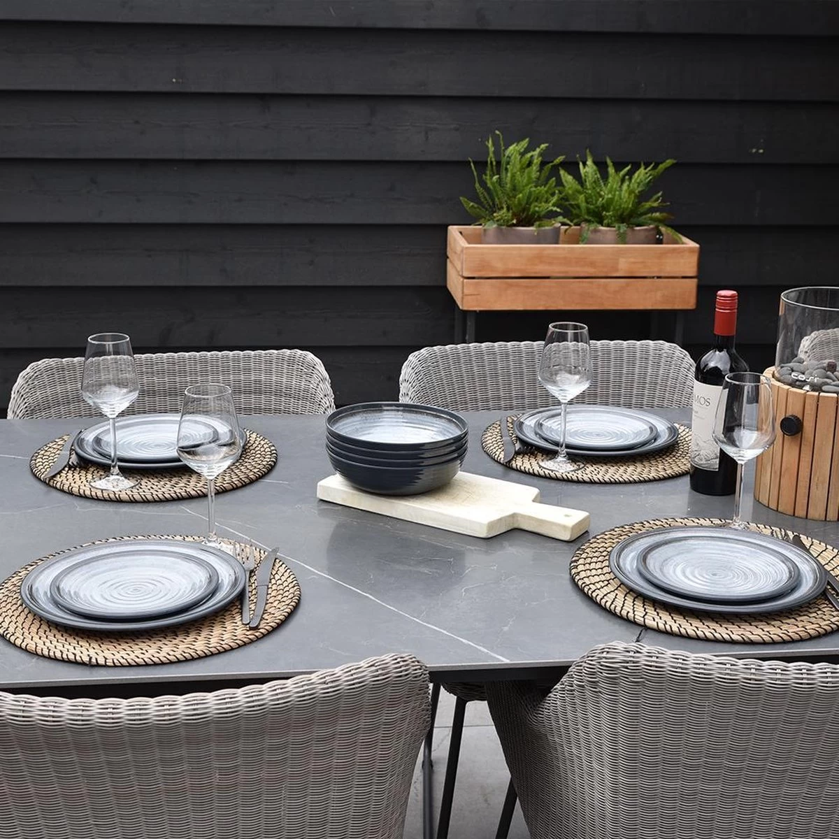 Deze 16-delige serviesset bestaat uit dinerborden, soepborden, ontbijtborden, mokken en schalen. Alles om te genieten van een uitgebreide maaltijd, op elk moment van de dag. De items matchen perfect met elkaar en zijn uitgevoerd in een frisse donkergrijze kleur. Houdt u meer van een lichtere kleur? Dan is de Jávea-lijn van Travellife misschien iets voor u. Dit is de lichtere variant van deze chique serviesset. Voor ieder wat wils! De Dénia en Jávea serviessets zijn ook verkrijgbaar in een 12-delige variant.