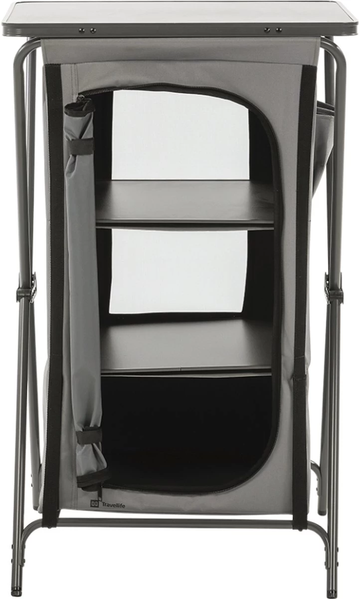 Een campingkast meenemen op vakantie zorgt voor een opgeruimde en overzichtelijke tent, camper of caravan. In de lage opvouwbare Toledo opbergkast van Travellife organiseer jij jouw spullen snel en eenvoudig.