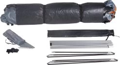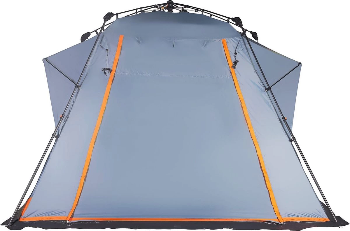 Innovatief vouwsysteem, ultrasnel Quick Up-opbouwen: dankzij het slimme opbouwsysteem kan de tent in een paar stappen snel en gemakkelijk opgezet en net zo snel weer afgebroken worden. Heel gemakkelijk, ook als u het nog nooit hebt gedaan. U hoeft alleen aan het veiligheidskoord te trekken, de tentstokken uit te vouwen en tenslotte met de bijbehorende haringen de tent vast te zetten – de tijdrovende ouderwetse manier is verleden tijd.