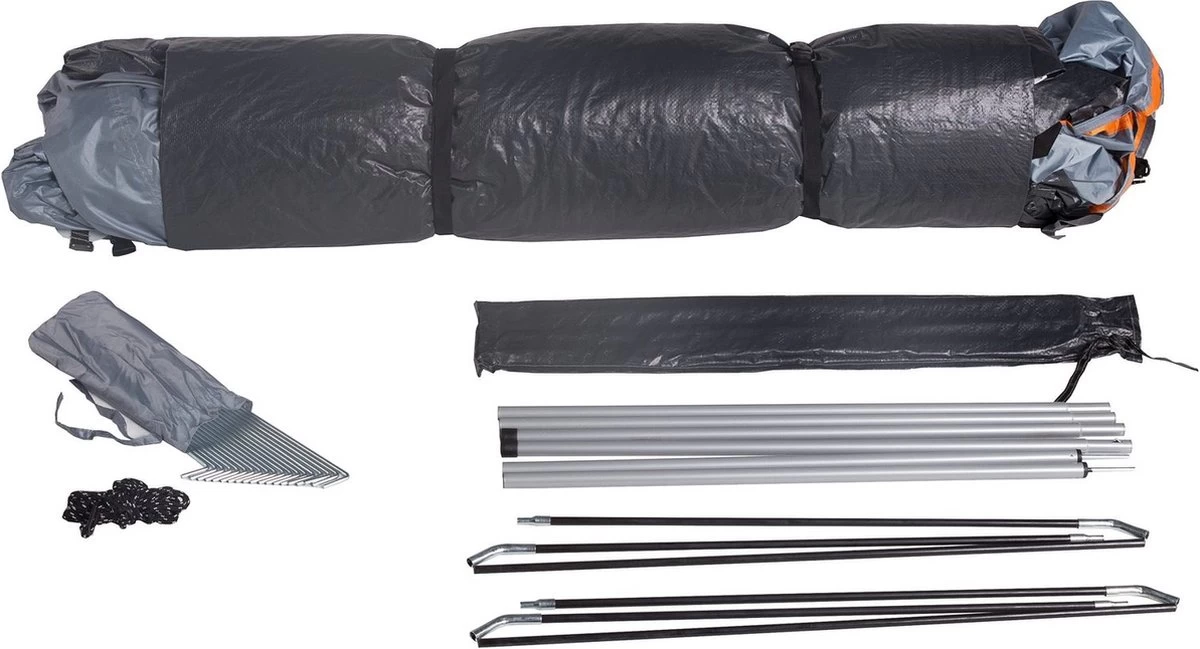 Materiaal buitentent: pu-gecoat 190T polyester, materiaal binnentent: ademend 190T.